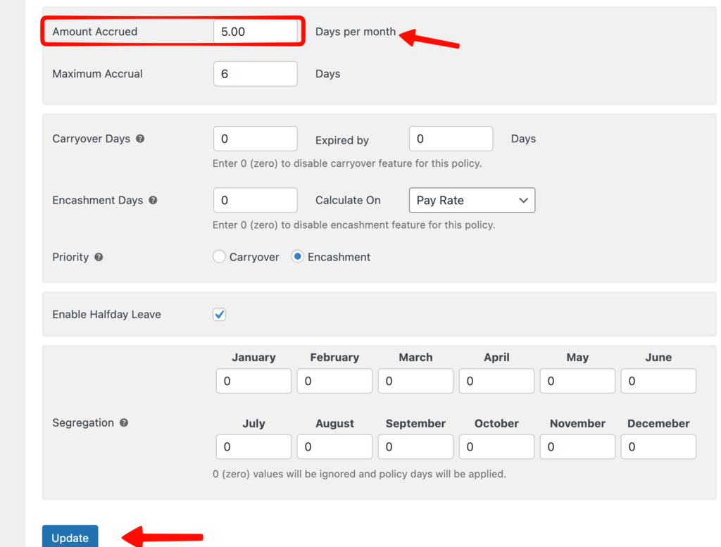 - Maximum Accrual:- Maximum how many days you want to give to your users.