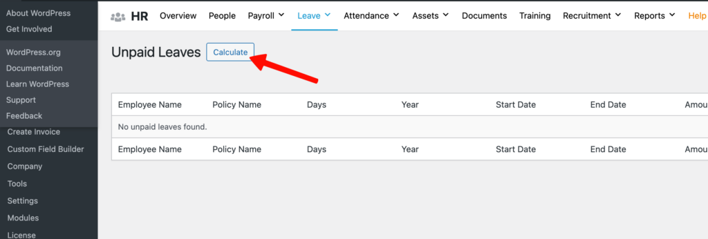 After that, you’ll get the Unpaid Leave dashboard where you can easily sort out according to your employee’s unused leaves. Therefore, you can finalize the money amount by clicking on the ‘Calculate’ button.