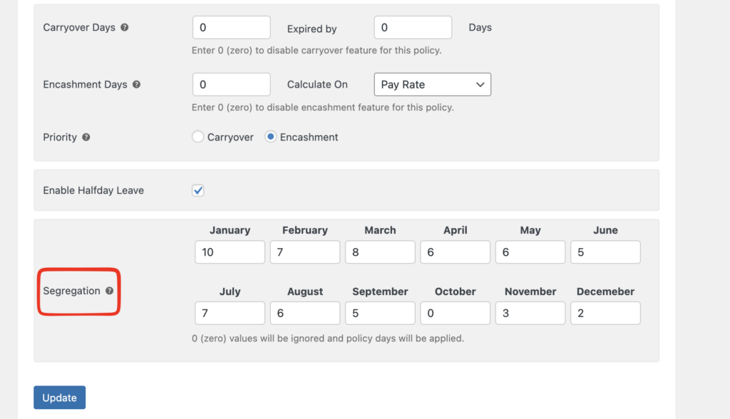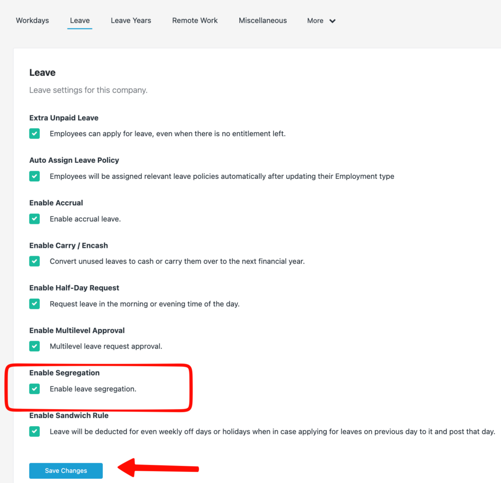 Now navigate to the leave policy. And select any of your leave. Then slightly scroll down to the page. You’ll get the ‘Leave Segregation part‘.
