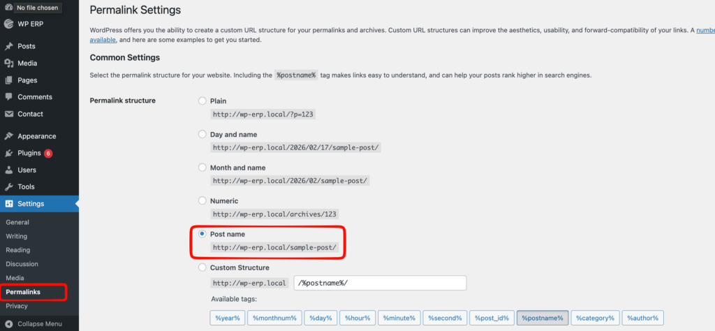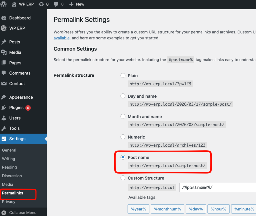 The next step is to reset the Permalink: