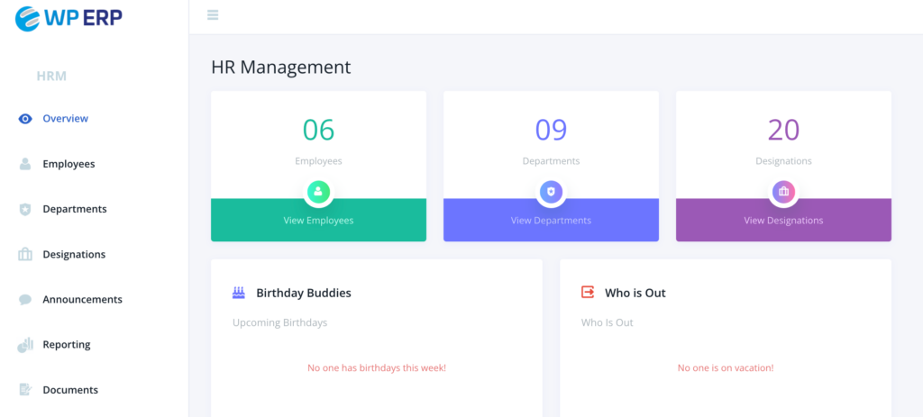 With WP ERP HR Frontend brings the HRM module of WP ERP to your web front. You can view and manage your employees securely from your website without going to the Backend or WordPress Admin Dashboard.