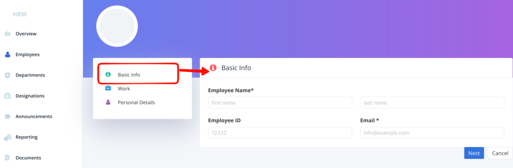 This will open up a new page for you to fill in all the details of the new employee.